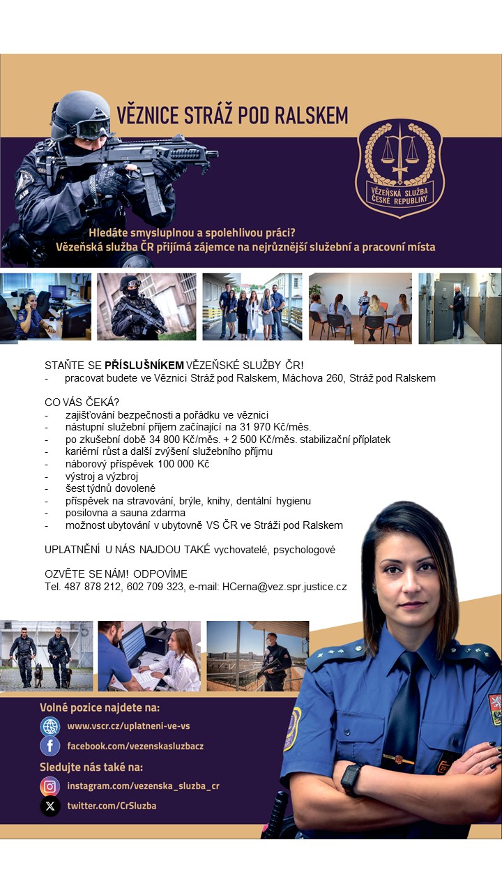 Nabídka zaměstnání ve Věznici Stráž pod Ralskem