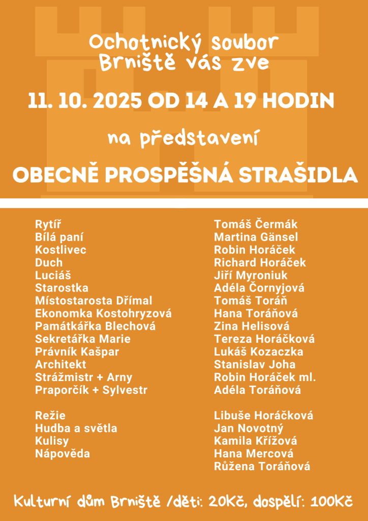 Ochotnický soubor Brniště vás Srdečně zve na divadelní představení: Obecně prospěšná strašidla